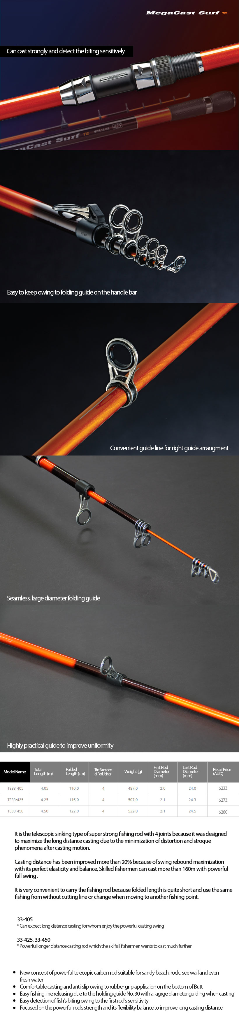 Mega Cast Surf TE Fishing Rod Sinking Type – Telescopic Carbon Rod